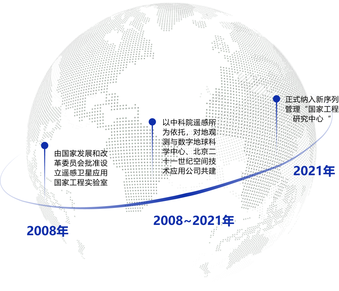 遥感卫星应用国家工程研究中心前身为2008年由国家发展改革委批准成立的遥感卫星应用国家工程实验室,2021年12月正式纳入国家工程研究中心新序列管理。工程中心的上级主管部门为国家发展和改革委员会,牵头建设单位为中国科学院空天信息创新研究院,联合二十一世纪空间技术应用股份有限公司、中科星图股份有限公司共建,是遥感卫星应用国家创新体系的重要组成部分。